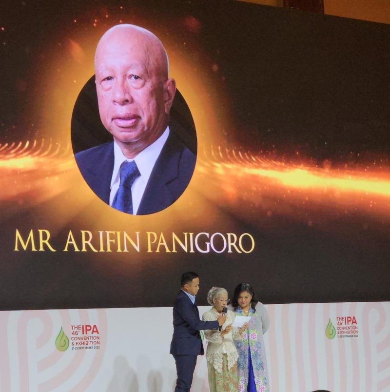 Aceh Timur, Suaranesia.com – Pendiri Medco Grup almarhum Bapak Arifin Panigoro menerima penghargaan Lifetime Achievement Award dari Indonesian Petroleum Association di acara 46th IPA Convention & Exhibition 2002, Kamis (22/9) di Jakarta. Penghargaan diserahkan kepada Ibu Raisis A Panigoro, istri almarhum oleh Presiden IPA Irtiza Sayyed bersama Menteri Energi dan Sumber Daya Mineral Arifin Tasrif, mantan Menteri ESDM Prof. Dr. Subroto.