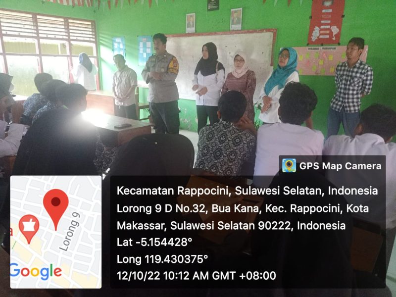Suaranesia.com//Makassar(Sulsel)-Wujudkan Kamtibmas di wilayah kerjanya, Bhabinkamtibmas Kelurahan Buakana, Kecamatan Rappocini Aiptu Jamaluddin melaksanakan kunjungan ke Sekolah SMP dan SMA Yayasan Nahdiat di jalan Rappocini lorong 9D Kelurahan Buakana Kecamatan Rappocini Rabu 12/10/2022.