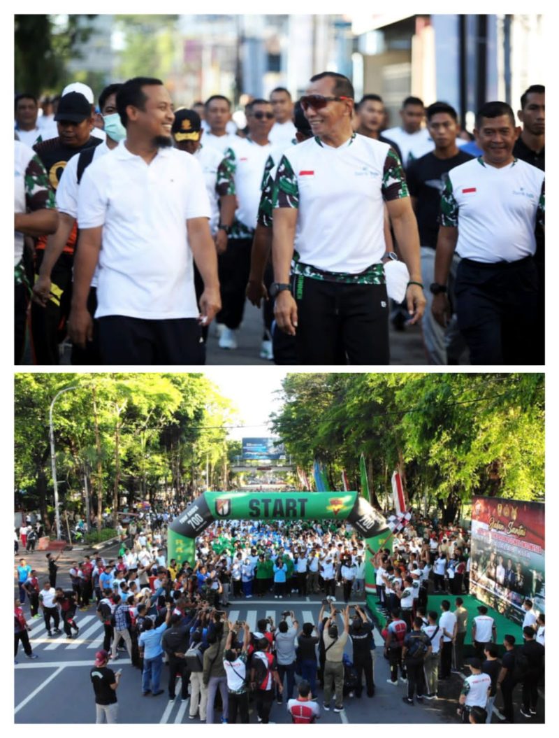 3000 an peserta gerak jalan santai ini dilepas oleh Gubernur Sulsel Andi Sudirman Sulaiman, S.T., bersama Pangdam XIV/Hasanuddin Mayjen TNI Dr. Totok Imam Santoso, S.I.P., S.Sos., M.Tr (Han), M.H., Pangkoopsud II, Danlantamal VI Makassar, Kasdivif-3/Kostrad, Wakapolda Sulsel, dengan mengangkat bendera start ditandainya gerak jalan santai dimulai.