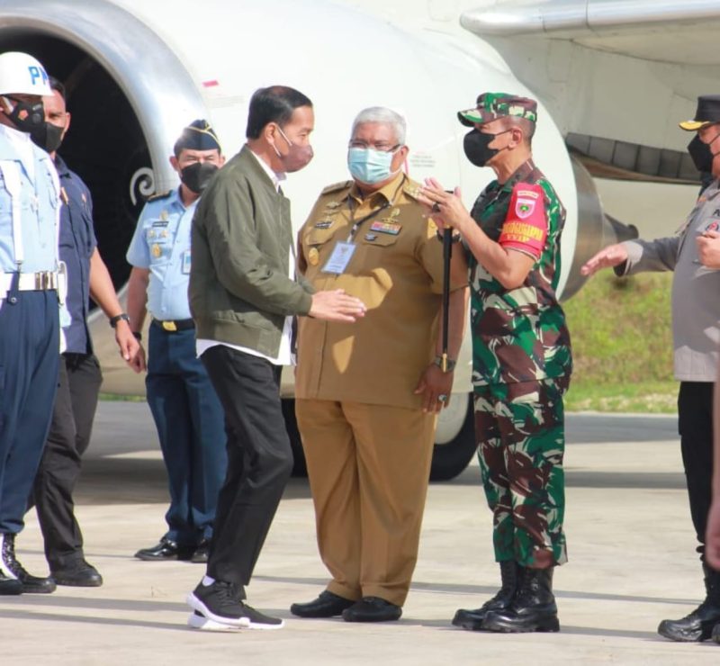 Kedatangan Presiden RI beserta rombongan juga di sambut oleh Gubernur Sultra, Kapolda Sultra dan Kasrem 143/HO.