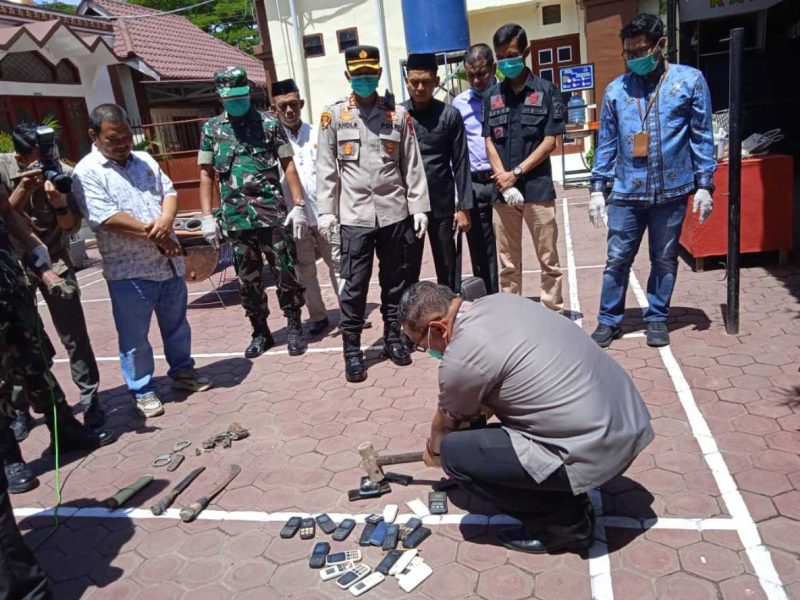 ” Tujuan dari pemusnahan barang bukti tersebut tidak lain agar barang bukti tersebut tidak dapat dimanfaatkan lagi oleh oknum yang tidak bertanggung jawab.” Jelasnya.