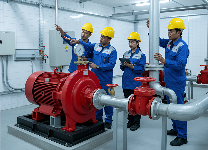 - Fire Pump Set: unit utama yang menjamin tekanan air stabil saat kebakaran.