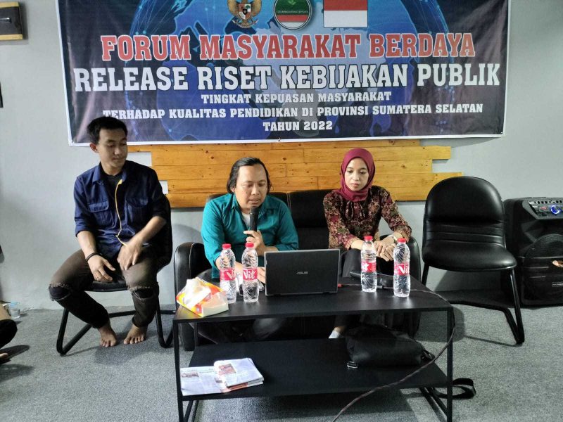 PALEMBANG – Forum Masyarakat Berdaya Merelease Riset Kebijakan Publik Tentang Tingkat Kepuasan Masyarakat Terhadap Kualitas Pendidikan Pendidikan di Propinsi Sumatera Selatan di tahun 2022, Selama 4 Tahun Kepemimpinan HD-MY.