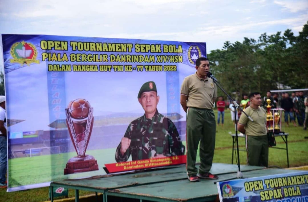 Dalam keterangan tertulis Rindam XIV/Hasanuddin, open turnamen sepak bola yang diselenggarakan Rindam XIV/Hasanuddin tersebut diikuti sebanyak 19 tim kesebelasan yang ada di wilayah Kab. Gowa, untuk merebutkan piala pergilir serta hadiah puluhan juta yang telah disiapkan panitia.