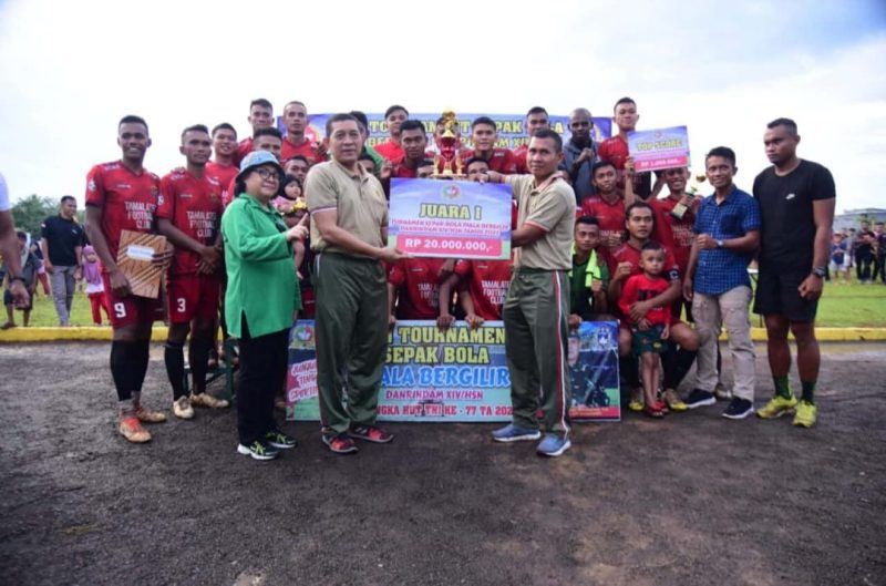 Suaranesia.com.Pakatto – Danrindam XIV/Hasanuddin, Kolonel Inf Ganda Simatupang, S.E., secara resmi menutup open turnamen sepak bola piala bergilir Danrindam XIV/Hasanuddin TA. 2002, dalam rangka memeriahkan HUT ke-77 TNI di Lapangan sepak bola Jenderal A.H Nasution, Kab. Gowa, Sulawesi Selatan, Jumat (14/10/2022).